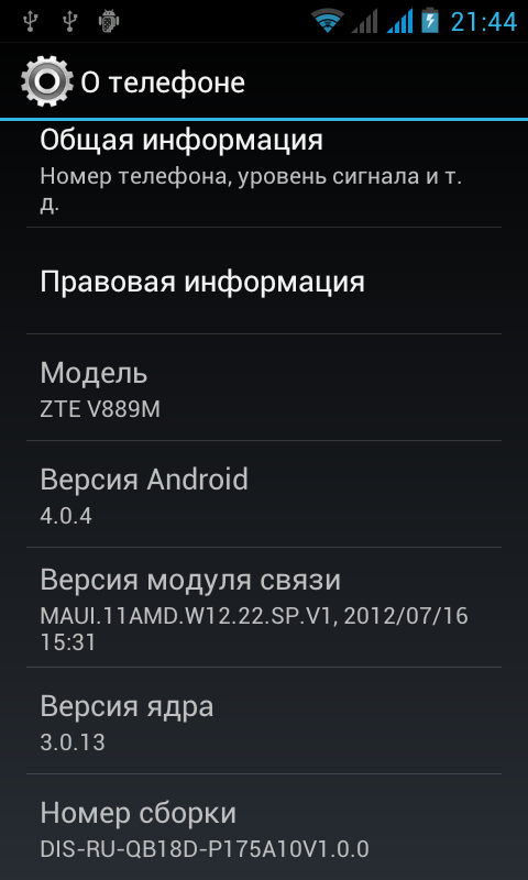 В ZTE V889M установлена ничем не примечательная матрица типа TFT TN. Конечно, для ультрабюджетного смартфона ее возможностей вполне достаточно: размер 4 дюйма, разрешение 480×800 точек, плотность 233 точки на дюйм. Соотношение физического размера дисплея и разрешения вполне достаточное для комфортной работы, отдельные пиксели видны только если их специально разглядывать, поднеся экран поближе к глазам. Все бы ничего, и на древность дисплея ZTE V889M можно было бы закрыть глаза, сославшись на низкую стоимость устройства, но в 2013 году это сделать уже не получится — в продаже появились смартфоны с качественными HD IPS-матрицами и при схожем с героем обзора ценником. Два таких устройства — Jiayu G3 и iconBIT NetTAB Mercury X — уже побывали в редакции.