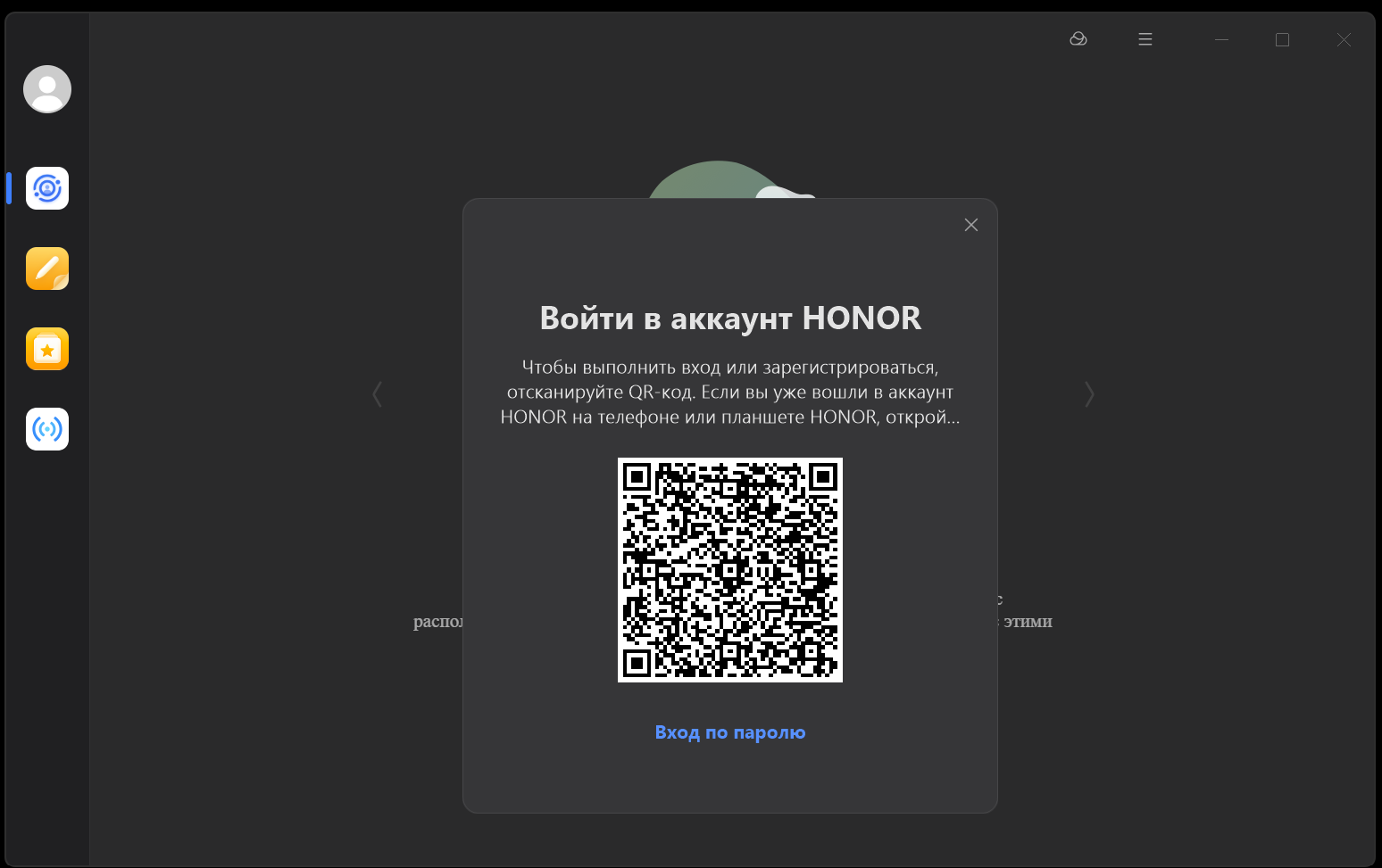 Перед началом работы нужно войти в аккаунт Honor (или создать его).