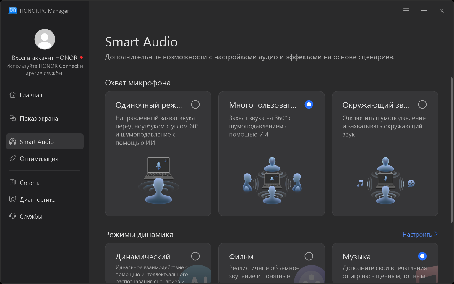 «Умные» настройки аудио (Smart Audio).