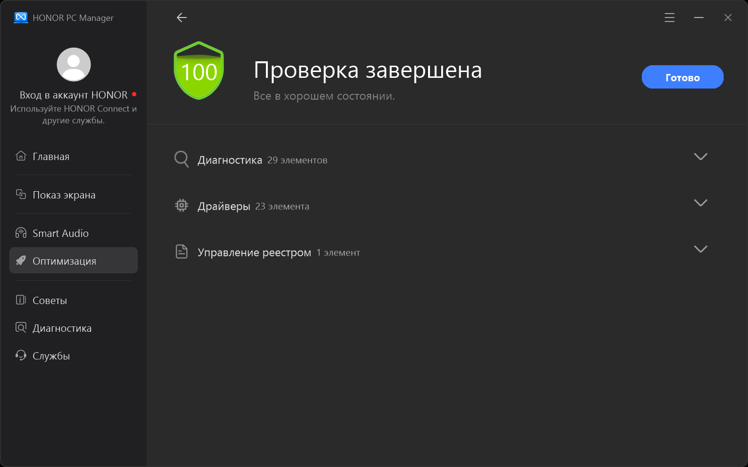 Вторая опция в разделе «Оптимизация» — проверка работоспособности аппаратных компонентов.