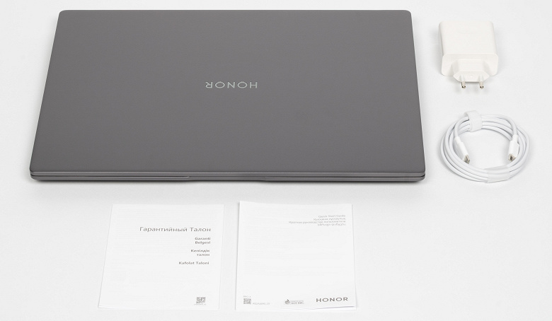 В комплекте поставки помимо самого ноутбука имеются лишь адаптер питания (подробности ниже) и традиционные бумажки.
