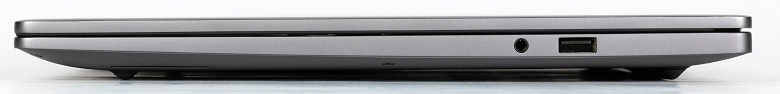 На левой боковой панели имеются мини-джек 3,5 мм для аудиогарнитуры и второй (или первый, если угодно) порт USB 3.2 Gen1 Type A.