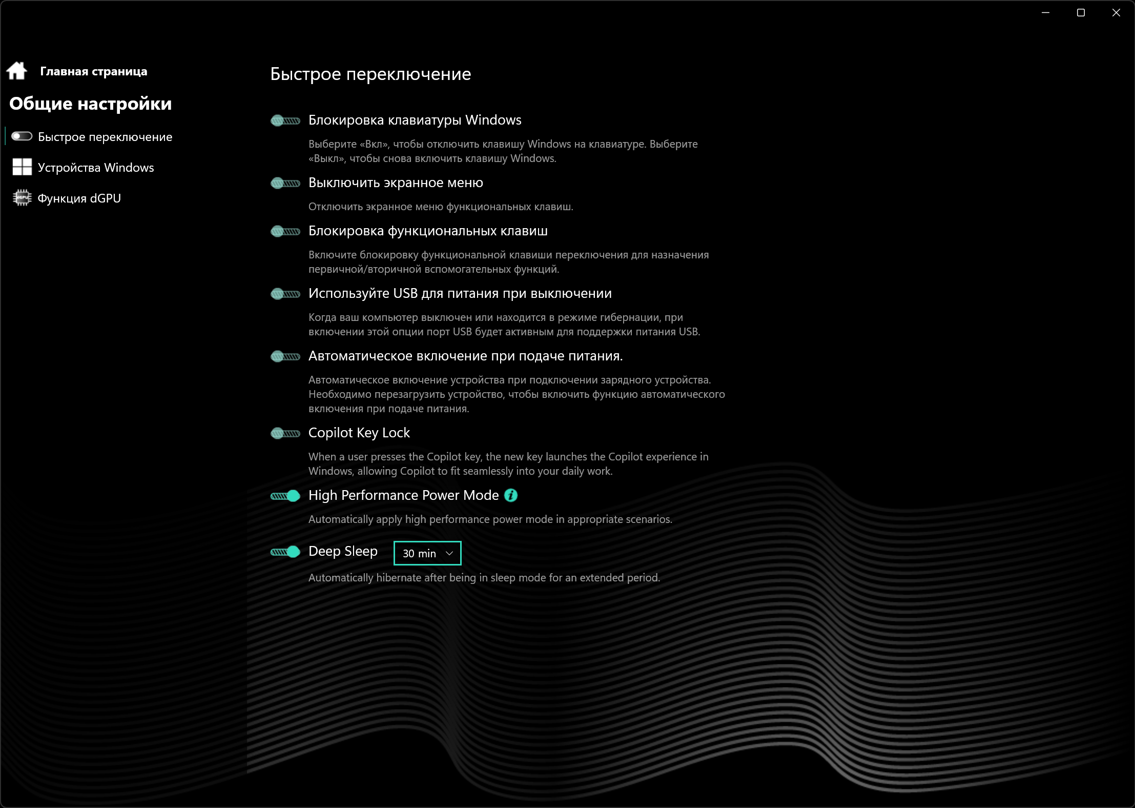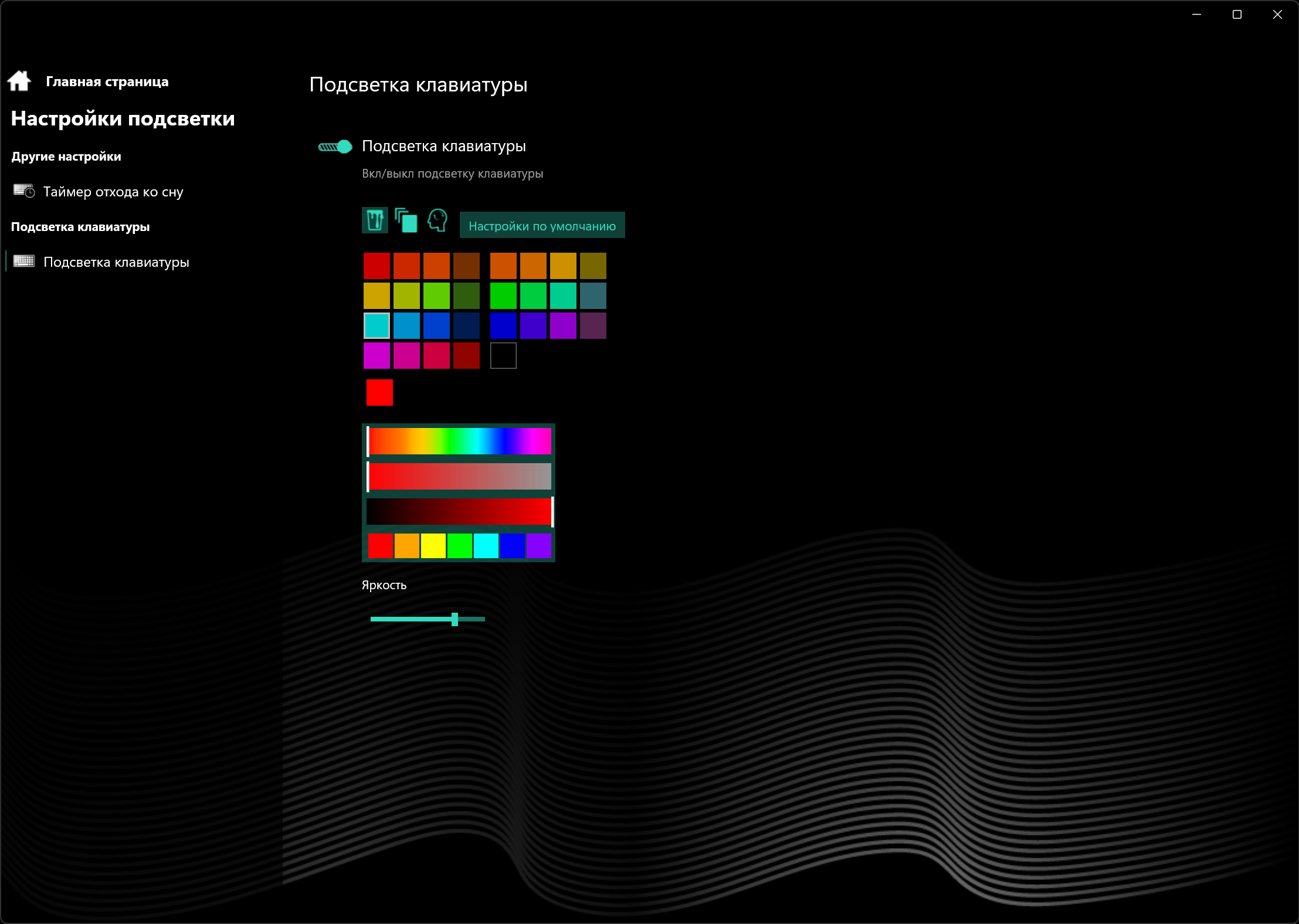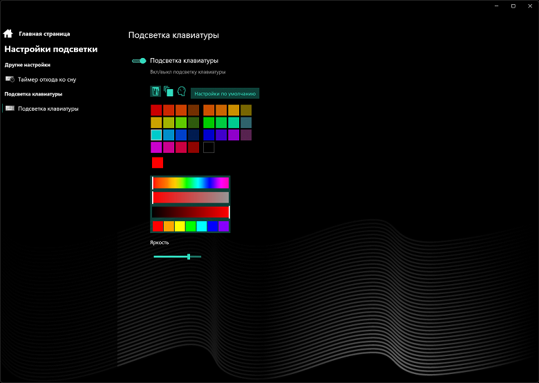 Клавиатура снабжена статической однозонной подсветкой с двумя уровнями яркости (третье состояние — подсветка выключена). Увеличение свечения производителя аккордом Fn+F6, уменьшение — Fn+F7.