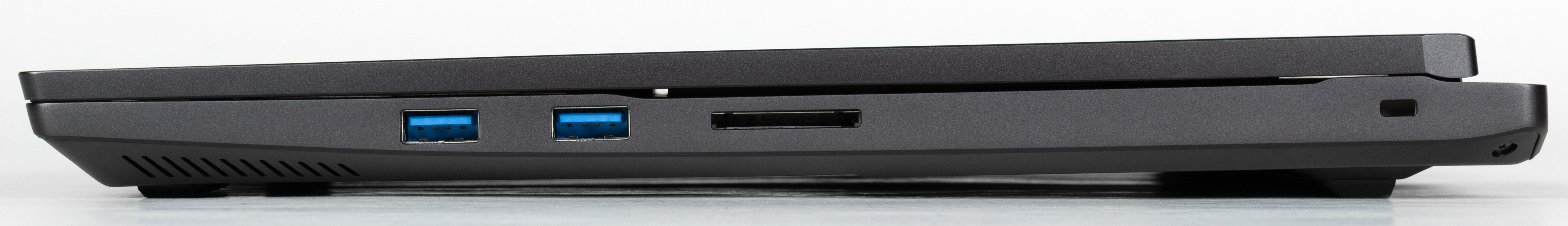 Справа на боковой панели имеются два порта USB 3.2 Gen2 Type A, слот картовода для SD и кенсингтонский замок.