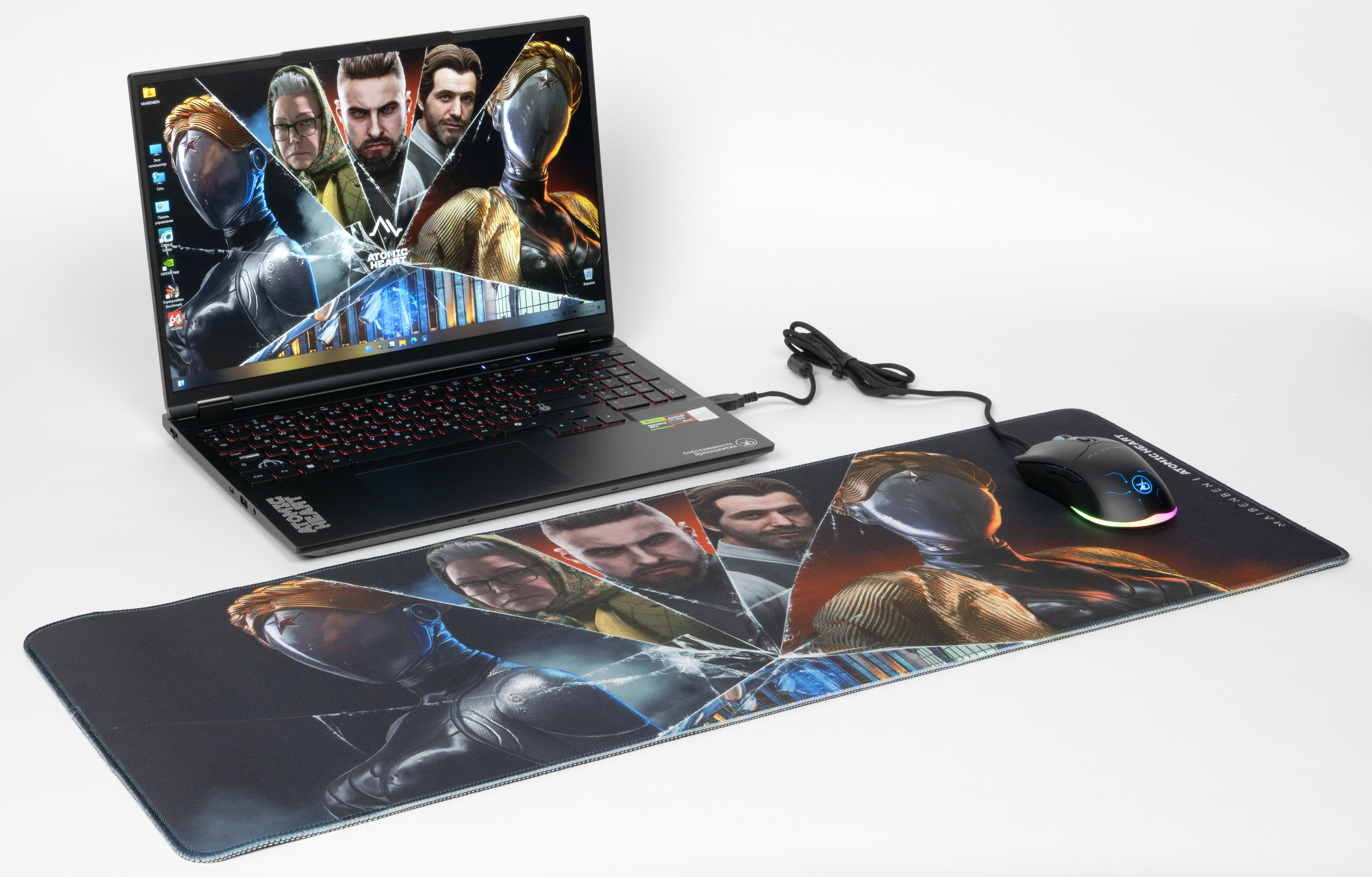 Ноутбук поставляется в дизайнерской коробке-шкатулке с броским оформлением в стиле Atomic Heart.