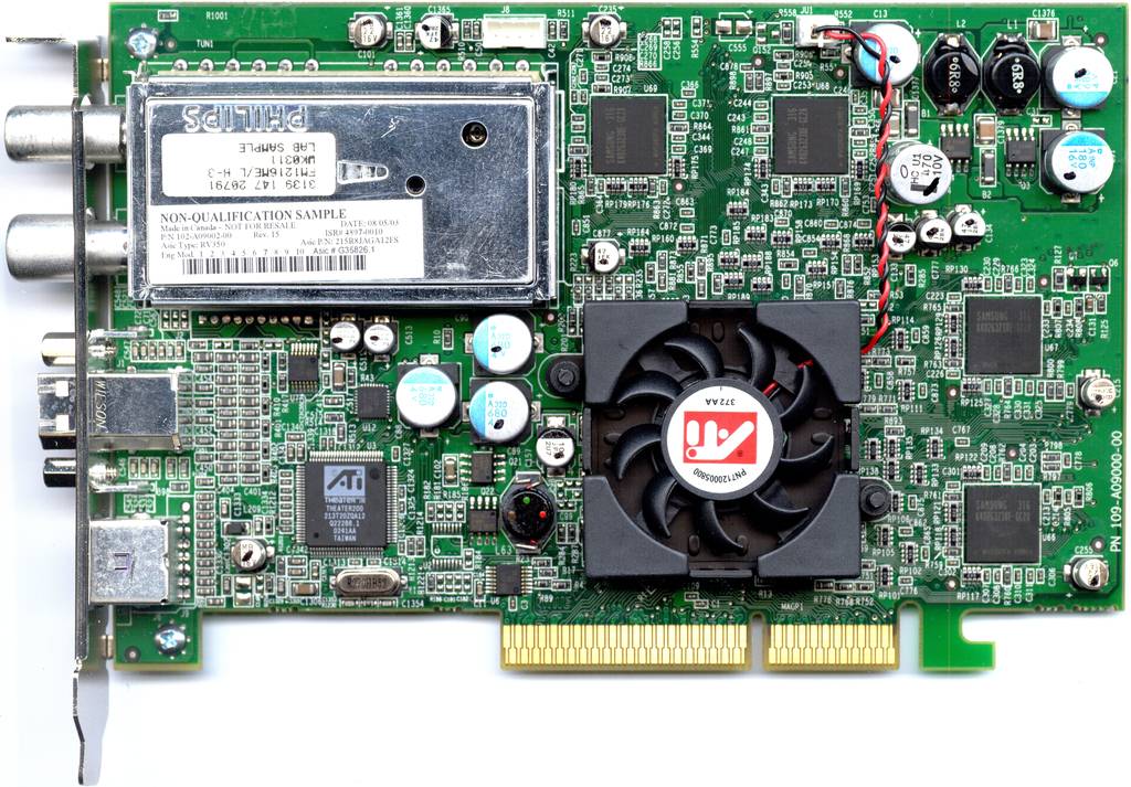 А вот конструкция несколько отличается от аналогов на базе 9700/9800. Отсутствуют радиаторы на элементах (впрочем, это логично, учитывая куда меньшее тепловыделение) и чип THEATER 200 (ага, тут тоже все хорошо, Rage Theater не предлагают) находится на лицевой стороне карты.