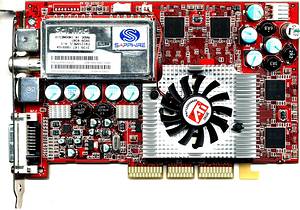 | Тут все привычно. Интерфейс AGP x8/x4/x2, 128 МБ памяти DDR SDRAM, размещенной в 8 микросхемах на лицевой и оборотной сторонах PCB. Микросхемы памяти производства Samsung (BGA). Время выборки у микросхем памяти 2.8ns, что соответствует частоте работы примерно 350 (700) МГц, память работает на частоте 340 (680) МГц. Частота работы GPU — 380 МГц, шина обмена с памятью 256 бит. | ![]() |