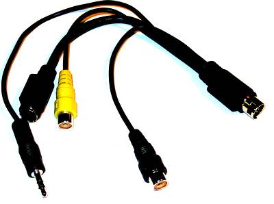 - Переходник для подключения к входному разъему (S-Video и 3 разъема RCA для видео и двух аудиоканалов)