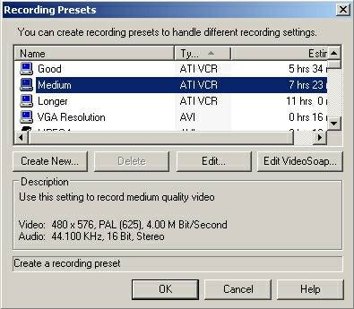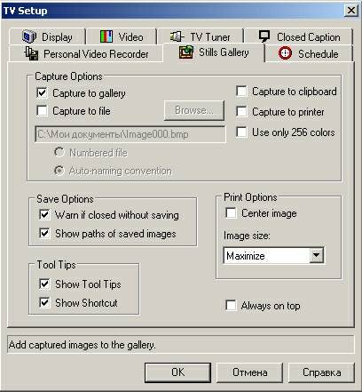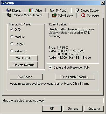 В разделе Personal Video Recorder предлагаются широкие возможности для настройки параметров видеозахвата.