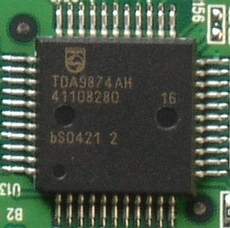 A2/NICAM стерео декодируется с помощью отдельного демодулятора/аудиодекодера Philips TDA9874AH, установленного на обратной стороне платы.