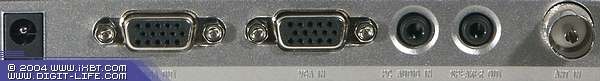 Задняя панель не изменилась, антенный коннектор (утопленный в корпус и удлиненный переходником), VGA-разъемы, аудиовход и аудиовыход остались на своих местах.