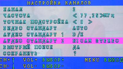 - Возможность индивидуальной настройки стандарта цветности и звука для каждого канала