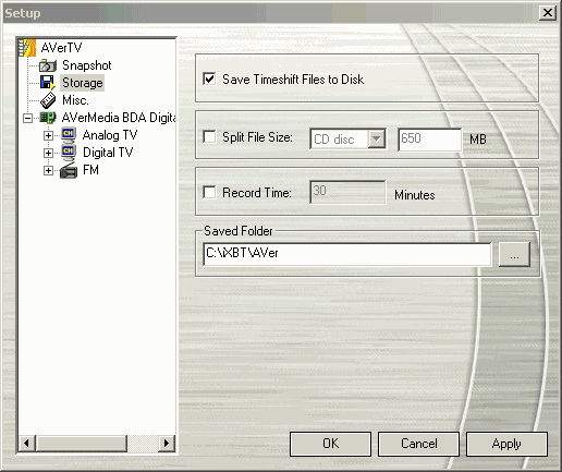 Режим отложенного просмотра TimeShift имеет возможность сохранения файла на жёсткий диск. Параметры этого режима зафиксированы на 720×576 5000 Кбит/с, VBR.
