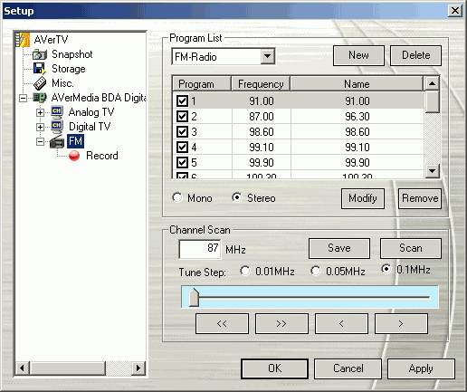 В новой версии AVerTV также используется общий интерфейс для TV- и FM-режимов.