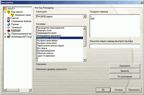 Раздел Keyboard (почему-то избежавший перевода на русский) предоставляет возможность полноценной настройки «горячих» клавиш.