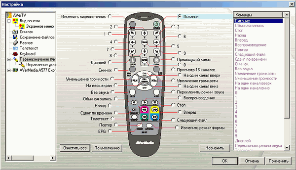 Штатное ПО поддерживает полноценную настройку кнопок пульта ДУ.