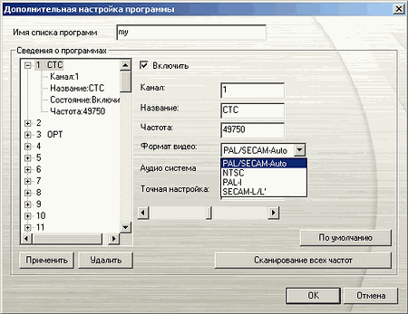 - Автоматическое определение стандарта вещания для канала( PAL/SECAM)