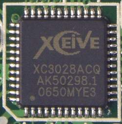 В AVerTV Hybrid Express используется гибридный ВЧ-блок XC3028, разработанный калифорнийской компанией Xceive Inc.. В отличие от знакомого нам по предудщим продуктам компании европейского варианта XC3018, не поддерживающего вещание в NTSC, этот приёмник является мультистандартным.