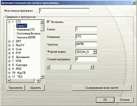 - Индивидуальные настройки изображения, звука, масштабирования и шумоподавления для каждого канала