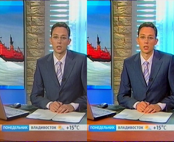 Ещё одной новинкой AVerTV 6.4 стал пункт «Усиление цвета», позволяющий дополнительно управлять насыщенностью (кроме автоматической работы возможно ручная настройка, которой, впрочем, может помешать ошибка в локализации, результатом которой стало непонятное «Свернуть» вместо «Минимум»). Результат представлен на скриншоте ниже, благо в программе реализованы демонстрационные режимы с обработкой половины изображения и с разделением окна.