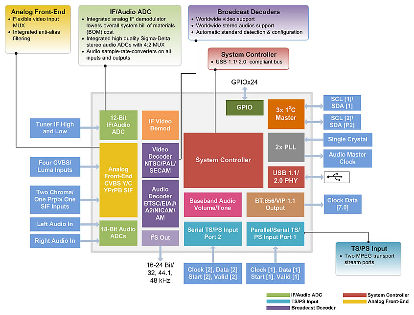 - поддержка всех аналоговых (NTSC/PAL/SECAM) стандартов с декодированием стереозвука;