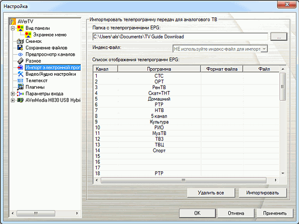 Ручная настройка таких параметров как VPID (Video Program Identification) и APID (Audio Program Identification) традиционно невозможна. Впрочем, не менее традиционно необходимости в последней при тестировании тюнеров от AVerMedia ни разу не возникало.