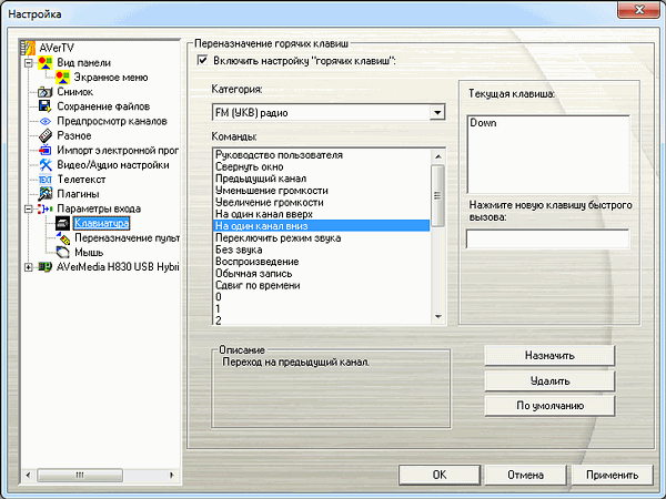 - настройка «горячих» клавиш;