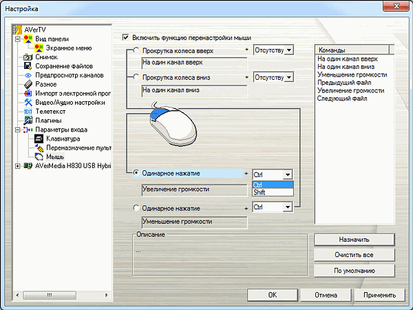 и кнопок/колеса стандартной трёхкнопочной мыши. Поддерживаются комбинации «кнопка мыши + кнопка-модификатор».