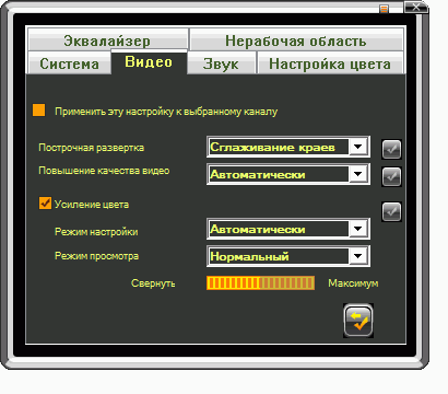 Из AVerTV 6.3 перекочевали 10-полосной эквалайзер, настройка баланса и раздельная регулировка громкости для левого и правого каналов.