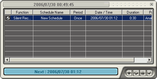 Планировщик поддерживает фоновую запись Silent Record, особенно полезную в сочетании с аппаратным кодером. Существует возможность отключения компьютера/перехода в энергосберегающий режим после выполнения запланированного задания.