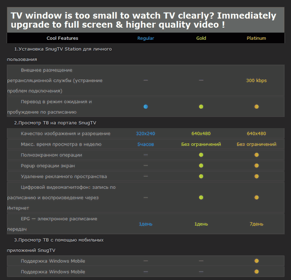 В дополнение к этому в конце 2009 года компания запустила сервис SnugTV, позволяющий организовывать сетевое вещание со своих тюнеров. Подробности можно найти далее по тексту.