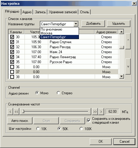 А вот поиск неожиданно выловил много «мусора». Не то, чтобы это критично, станции добавляются, как правило, один раз, удалить лишние частоты потом нетрудно, но у AVerTV Studio Model 305 в тех же самых условиях такого не наблюдалось. С качеством тоже все нормально (скачать 20-секундный фрагмент, MP3, 480 КБ).
