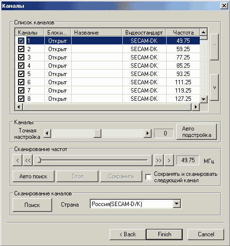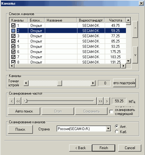 В AVerMedia отказались от традиционного разделения каналов на антенный и кабельный диапазоны, существующий список состоит из 99 каналов по возрастанию частоты. При наличии у пользователя как антенного, так и кабельного ТВ, такой подход, без сомнения, будет удобнее.