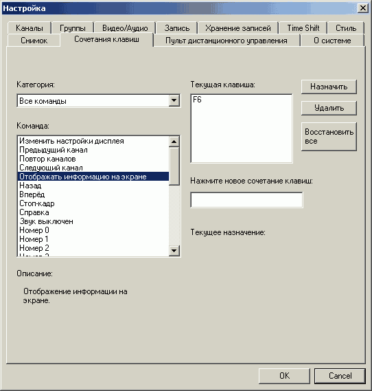 - Настройка клавиатурных сочетаний и кнопок пульта ДУ