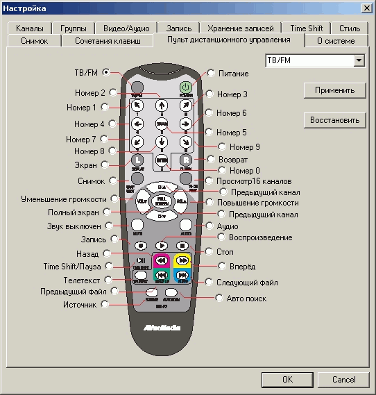 В AVerTV 5.5 реализовано переназначение кнопок пульта ДУ.