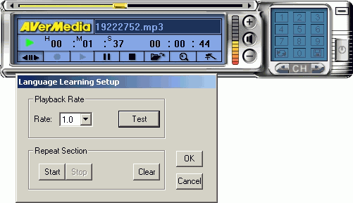 По сути, данная функция аналогична Foreign Language Learning Machine у MSI MS-8606, но есть и отличия. Так, промежуток воспроизведения задается непосредственно при прослушивании, а скорость воспроизведения меняется от 0,5 до 1,8 относительно нормальной. Настройки вызываются по нажатию правой кнопки мыши на соответствующей пиктограмме.