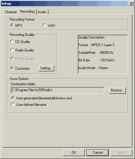 - Запись в формате MP3 с возможностью настройки качества