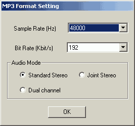 - Поддержка записи в MP3 с битрейтом до 192 Кбит/c и частотой дискретизации до 48 КГц