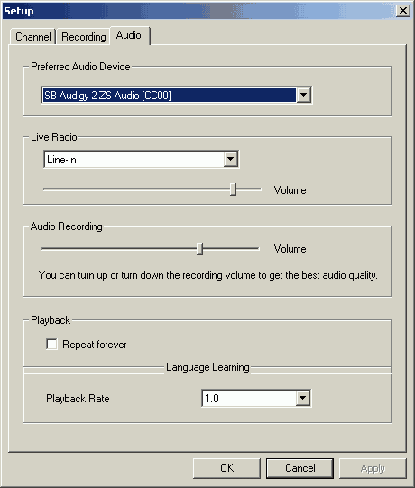 Здесь же находятся настройки Language Learning, представляющей собой многократное воспроизведение фрагмента записанного файла с заданной скоростью.