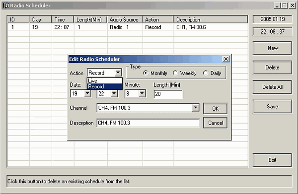В соответствии с заявленными возможностями, в наличии имеется планировщик записи (возможна и настройка на прослушивание эфира).