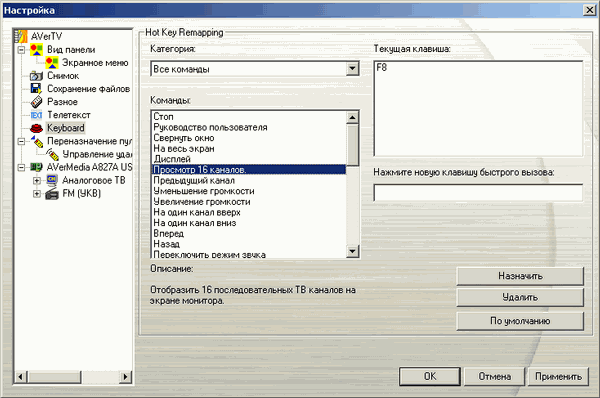 Раздел Keyboard (до сих пор избегающий перевода на русский) предоставляет возможность полноценной настройки «горячих» клавиш.