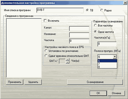 В дополнительных настройках каждого канала можно изменить название, частоту, полосу пропускания и настройки часового пояса для использования EPG (Electronic Program Guide). Ручная настройка таких параметров как VPID (Video Program Identification) и APID (Audio Program Identification) традиционно невозможна. Впрочем, необходимости в последней при тестировании тюнеров от AVerMedia ни разу не возникало.
