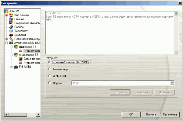 - Поддержка MPEG2 HDTV (1080i / 720p) и h.264 (для AVerTV Hybrid Volar HX)