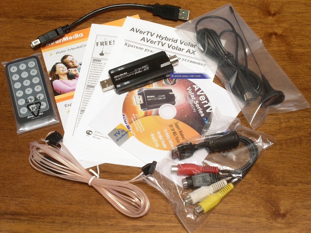Комплект поставки AVerTV Hybrid Volar HX отличается наличием компактной DVB-T антенны и другим пультом ДУ.