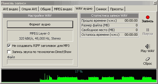 Захват возможен с любым установленным в системе кодеком. Поддерживается шумопонижение и отсечение краев.