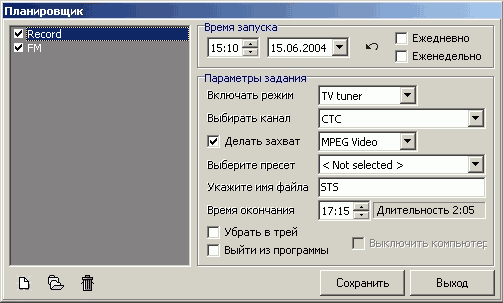 Планировщик функционален, к тому же умеет выключать компьютер после записи.