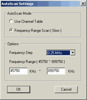 В последних версиях программы появился давно ожидаемый поиск по частоте, доступ к которому предоставляется при помощи кнопки Enable Advance Auto Scan. Шаг поиска составляет 0.05, 0.1, 0.25, 0.5 и 1 МГц.