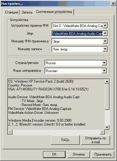 Тюнер комплектуется той же компактной антенной, что и серия VideoMate Action. К сожалению, качество приёма с этой антенной оказалось далеко не таким, как у вышеуказанных моделей. То ли чувствительность классических приёмников от LG в режиме приёма радиостанций выше, чем у Xceive, то ли причина кроется в особенностях дизайна P300, но штатная антенна в моих условиях оказалась непригодна к использованию. Хорошо, что F-Connector позволяет избежать сложностей с подключением альтернативных вариантов. Напомним, что список каналов находится в файле fmchlist.bin, размещённом в Program FilesVideoMateVideoMateCompro FM 2 c (для Compro PVR 2 это файлы channel.bin и chnprop.bin соответственно).