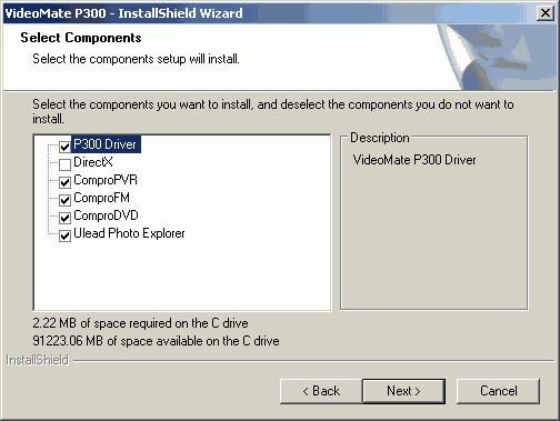 Установочное меню предлагает выбор компонентов. Отметим, что фильтры, использующиеся для работы шумоподавления и функции Timeshift теперь входят в состав программы для работы с тюнером, так что, установка Ulead Photo Explorer не является обязательной. Для поддержки прямой записи на оптический диск рекомендуется установка Ulead DVD MovieFactory 4 SE.