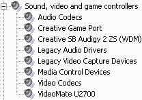 После установки в разделе Sound, video and game controllers диспетчера устройств предсказуемо появляется VideoMate U2700.